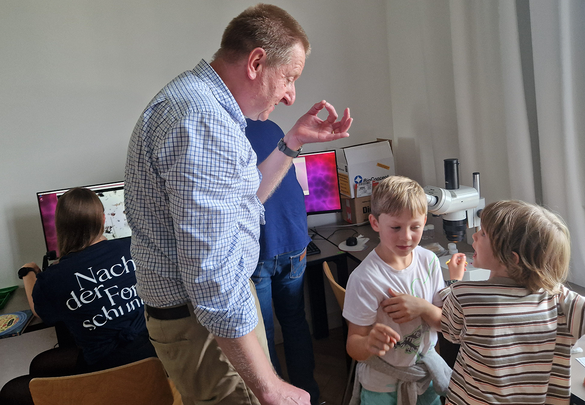 On Saturday, 6th September, the University of Bern hosted the "Nacht der Forschung" (Night of Research), a university-wide event that transformed the campus into a "festival of knowledge". The Microscopy Imaging Center (MIC) was one of over 80 projects that welcomed approximately 10,000 visitors, inviting them on a journey into the microcosm. Over 50 dedicated volunteers, a mix of students and staff, guided guests through the secrets of animal and plant cells.