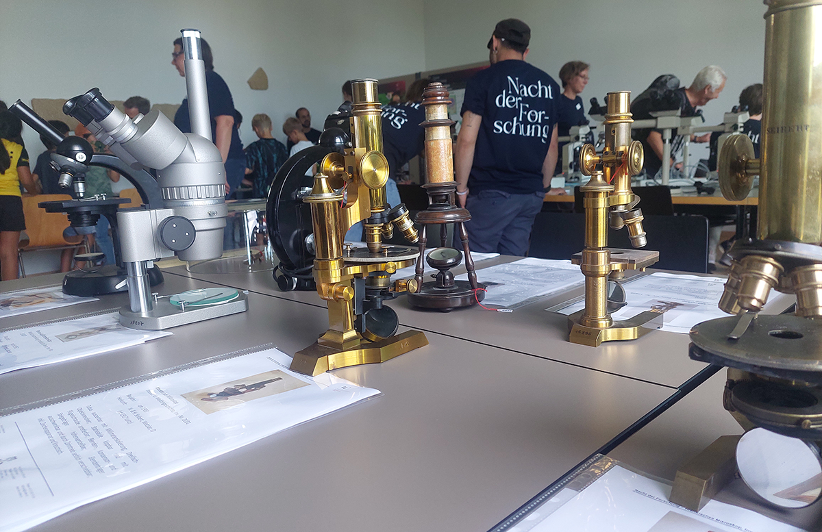 The MIC’s exhibit provided an artistic and hands-on look at research in the life sciences. Interactive stations allowed guests to use professional microscopes to view hidden life and fascinating structures. Attendees could also learn how to prepare their own samples and even fold an origami microscope to take home. For a deeper dive, visitors experienced a new perspective through virtual reality, traveling through the delicate skeleton of a zebrafish or the internal structures of a mouse's skull. The event also featured a "Sci-Art" gallery where aesthetic images merged with biological knowledge. Thanks to a loan from the Institute for the History of Medicine, the MIC was able to showcase an exhibition of historical microscopes.