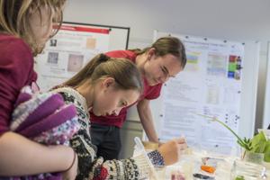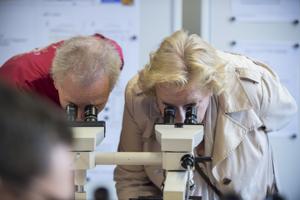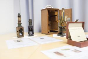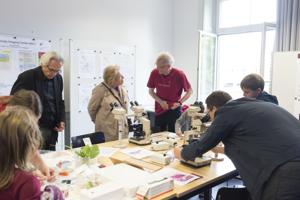 On September 16, 2017, the University of Bern celebrated the Nacht der Forschung. The MIC contributed with various activities, organized by the coordinator Ruth Lyck. Urban Deutsch, Britta Engelhardt, Xenia Ficht, Daniel Hauser, Robert Rieben and Stefan Tschanz. Each of them gave short talks about their research and linked their findings to the benefit and fascination of high-quality microscopy. An exhibition of historic microscopes, kindly provided by the Institute of Medical History, and of microscopic images, kindly provided by members of the MIC, decorated the seminar room and, thus, added to the enjoyable atmosphere of presentations. In parallel, the visitors had the opportunity to construct a simple microscope with their smart phone camera, using a glass bead and a holder. This activity proved to be very attractive: Under the supervision of Yury Belyaev, Ana Stojiljkovic and Daniel Hauser more than 150 microscopes with magnification of 100x and 300x were built and distributed. We also set up three binocular microscopes and a specimen preparation station. In addition, histological samples from the medicine basic education were presented. Specimen preparation and inspection through the microscope was highly attractive especially for children. Popular with all age groups were the histological samples. Pascal Ender, Ruth Lyck, Nora Ruef, Raphaela Seeger, Michael Stoffel and Stefan Tschanz guided and supervised sample preparation and microscopy. Mariana Dias, Martin Liptay, Anita Senk, Coralie Dessauges and other students of the PhD program Cutting Edge Microscopy, provided additional important support. See impressions below.